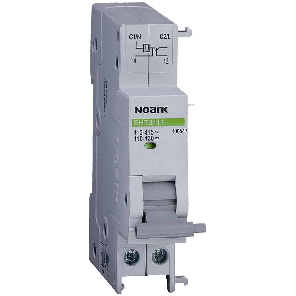 Bobina de declansare siguranta automata (disjunctor) Noark, model SHT3111, cu tensiune de operare 12-24V AC/DC. Acest dispozitiv este o bobina de declansare shunt cu un contact auxiliar 1CO (1 contact deschis). Produsul este conceput pentru utilizare in sisteme de protectie si automatizare electrice, compatibil cu disjunctoare si sigurante automate. Specificatiile tehnice includ functionarea atat in curent alternativ (AC) cat si in curent continuu (DC) in domeniul de tensiune 12-24V, oferind versatilitate in aplicatii industriale si comerciale. Bobina de declansare este un component esential pentru sistemele de protectie electrice, asigurand operarea controlata a disjunctoarelor in caz de defect sau pentru operatii de mentenanta.