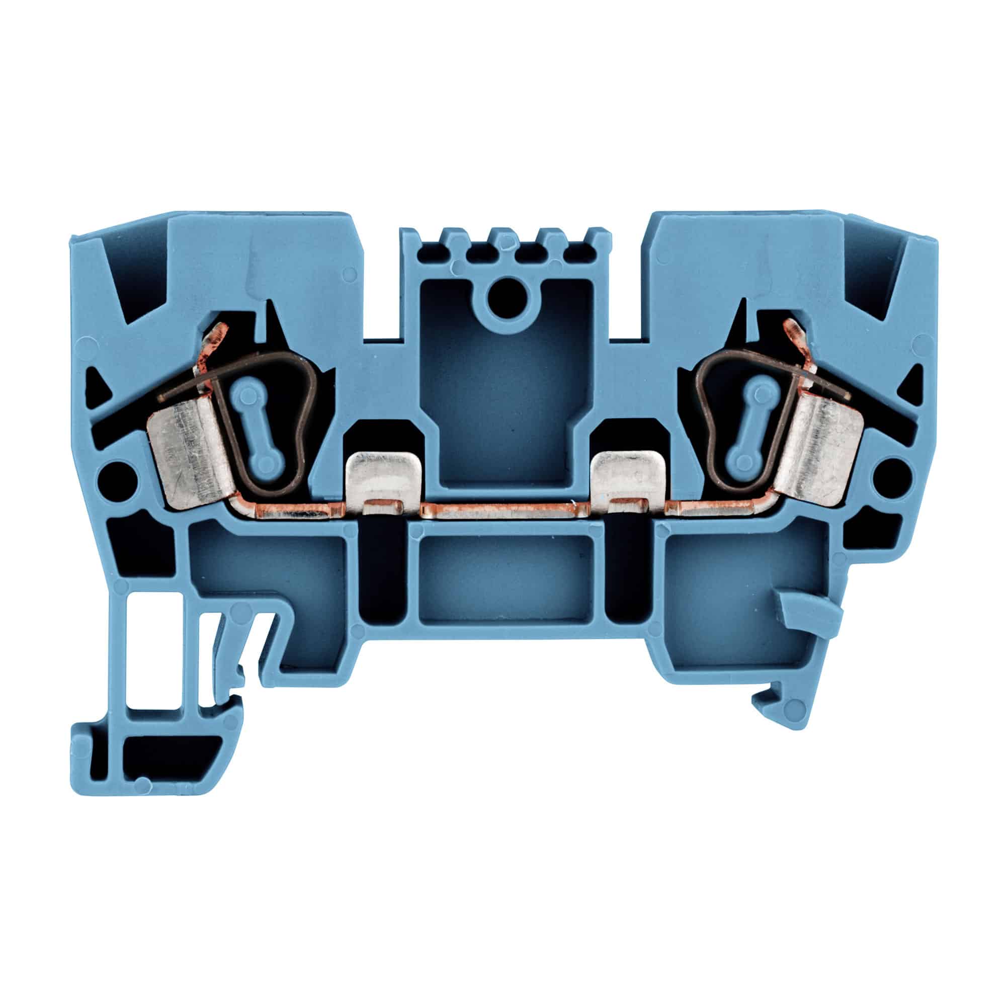 Clema de sir pentru fixare pe sina DIN, de culoare albastra, proiectata pentru conductori cu sectiune intre 0.5 si 4 mm². Dotata cu conexiune elastica de tip YBK, asigura o fixare sigura si eficienta. Produs fabricat de brandul Schrack, identificat prin codul SKU IK611004. Acest tip de clema fara surub este utilizat in aplicatii electrice si de distributie, oferind o solutie practica si fiabila pentru instalatii.
