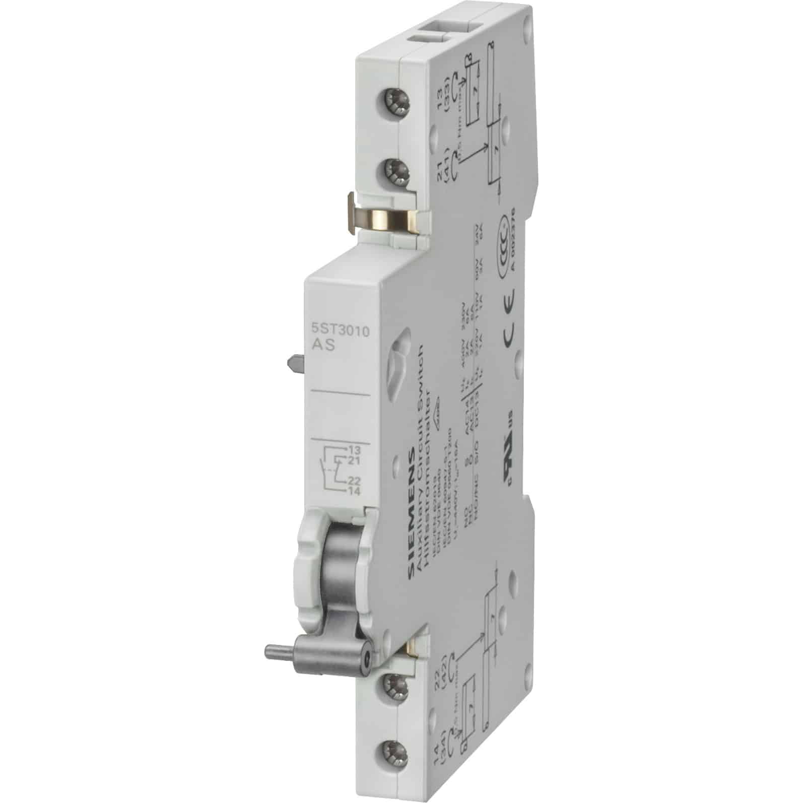 Contact auxiliar lateral pentru siguranta automata (disjunctor) Siemens cu functie de semnalizare. Acest contact auxiliar are o capacitate de 6A si functioneaza la o tensiune de 230VAC. Este echipat cu 2 contacte normal inchise (2NC) si este proiectat pentru montaj pe sina DIN. Produsul este compatibil pentru utilizare cu suplimentarele de protectie 5SP4, 5SY4 si 5SY5. Contactul auxiliar asigura semnalizarea si functioneaza ca un intrerupator auxiliar in instalatiile electrice, oferind indicatii vizuale sau comenzi secundare pentru disjunctoarele automate. Specificatiile tehnice includ: AC B300 si DC P300, fiind un component esential in panourile electrice si sistemele de distributie.