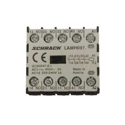 Contactor mini Schrack, 230VAC, 3A, 4P, 4ND, LAMH0373. Contactorul și releul termic Schrack se aleg astfel încât curentul nominal să fie mai mare decât curentul nominal al motorului. Produsul face parte din gama de contactoare și relee termice, fiind utilizat în aplicații electrice industriale și de automatizare. Este compatibil cu alte componente din seria Schrack Technik, precum BZ651000, BZ652000, IK022176, LAMD0510, LAMH0370, LAMH0380, LAMH0383, LAMH0390, LAMH0393, LSHD0673, LSHD0675, LSHD0683, LSHD0685, LSHD0693, LSHD0695. Acest contactor este potrivit pentru utilizări care necesită fiabilitate și performanță în controlul motoarelor și al circuitelor electrice.