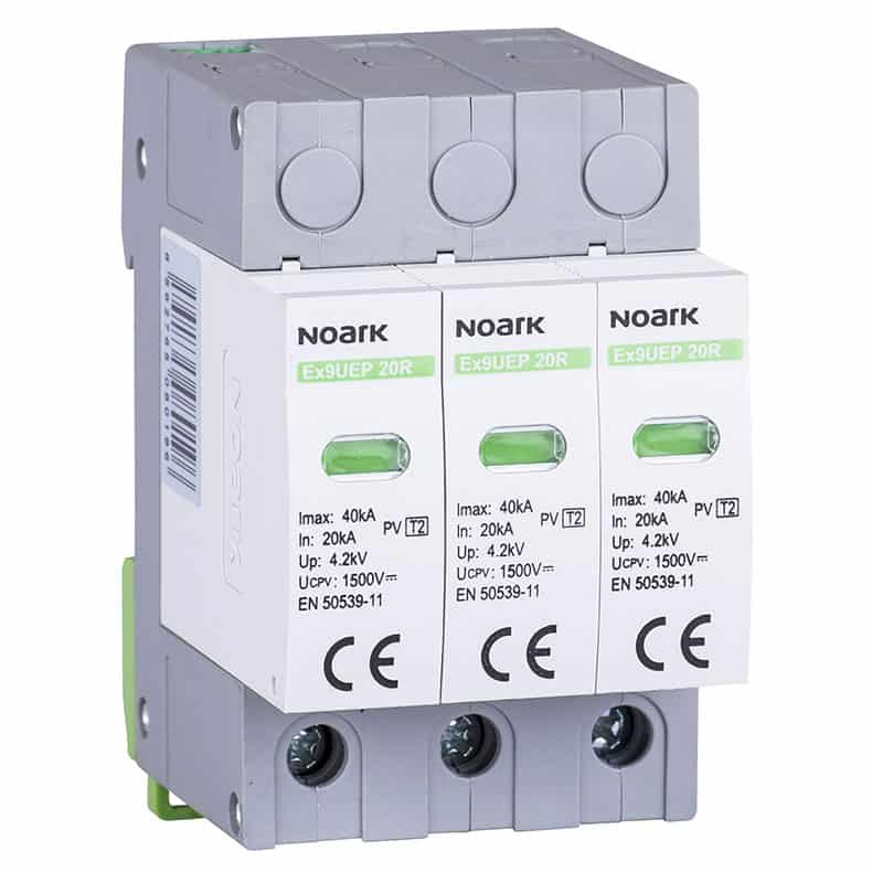 Descărcător la supratensiune Noark, configurație 3+0, debrosabil fără semnalizare, 3 poli (3P), tip C, tensiune nominală 1500VDC. Acest dispozitiv oferă protecție împotriva supratensiunilor în instalații electrice de curent continuu. Produsul face parte din gama de componente electrice Noark și este conceput pentru aplicații industriale și comerciale care necesită protecție fiabilă împotriva supratensiunilor. Configurația 3+0 asigură protecție completă a sistemului, iar caracteristica de debrosare fără semnalizare oferă funcționalitate simplă și eficientă.