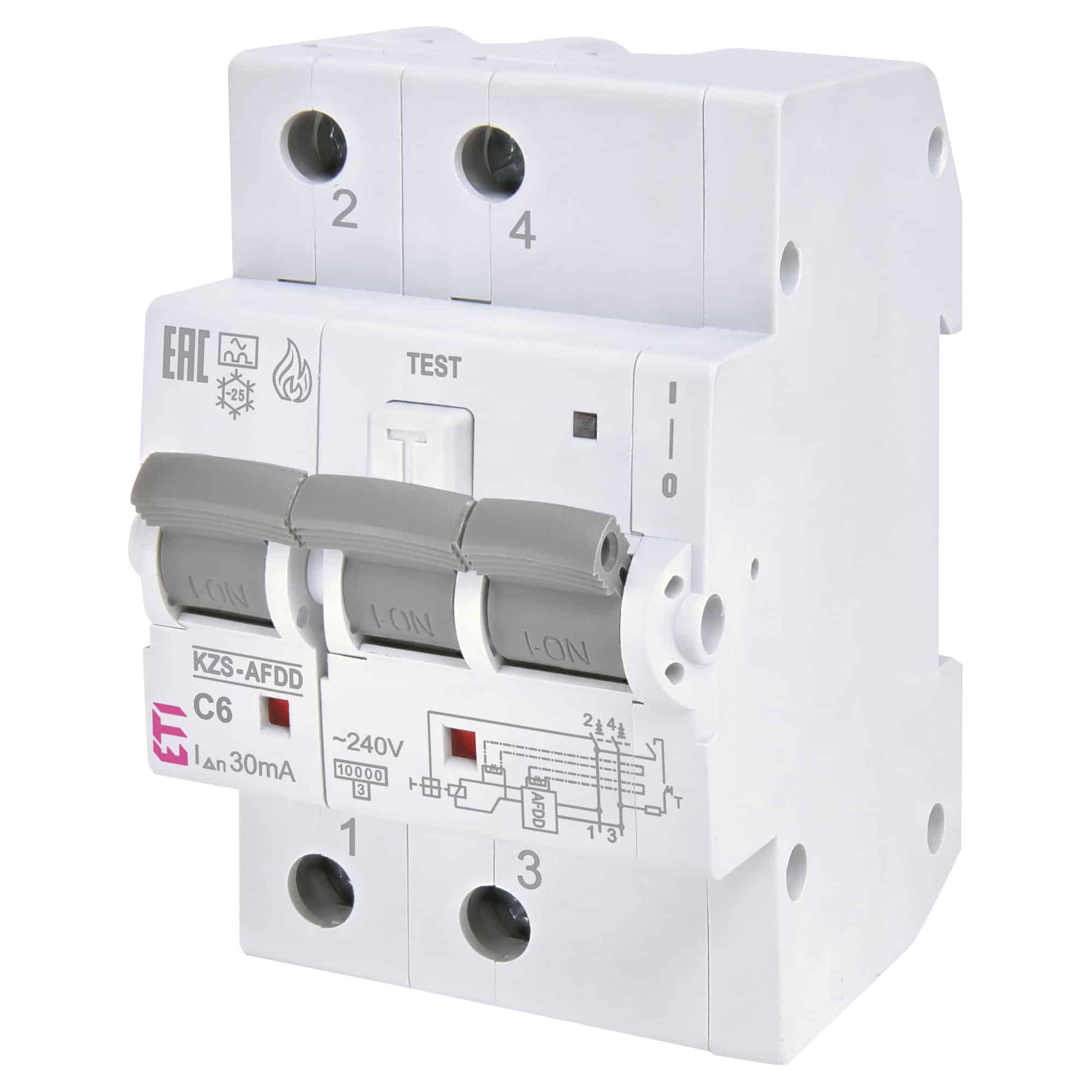 Dispozitiv de detectare a defectelor de arc electric AFDD+RCBO, 2P, 6A, 30mA, curba C, tip A, 10kA de la ETI. Acest produs este fabricat în fabrica ETI din Hildburghausen, Germania, și face parte din gama de dispozitive de protecție electrică de înaltă calitate. Dispozitivul integrează tehnologie de ultimă oră și se caracterizează printr-un profil identic care contribuie la aspectul streamline și coordonat al instalației. ETI este un producător lider mondial de dispozitive de protecție electrică, oferind soluții fiabile pentru protecția împotriva defectelor de arc electric și a curentului rezidual.