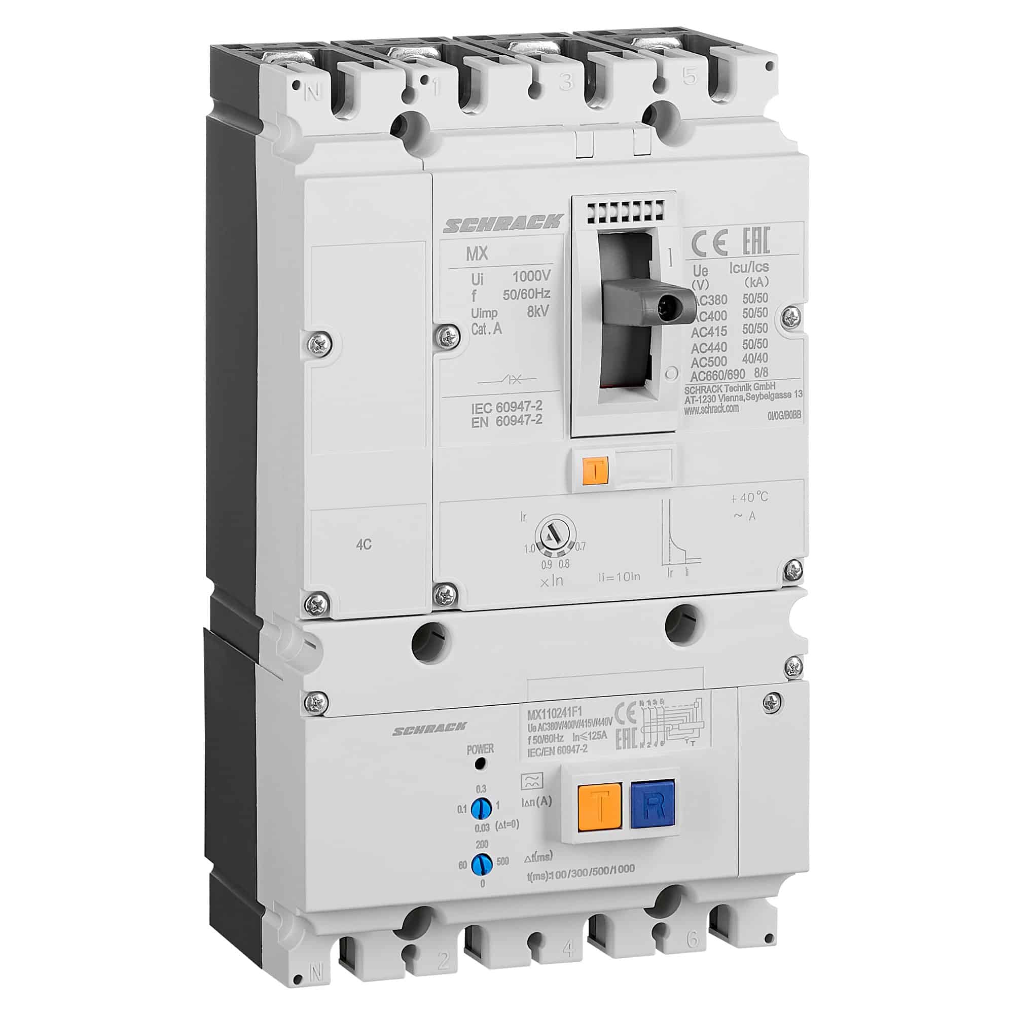 Acest întreruptor automat MCCB combinat cu blocuri diferențiale de mărime 1, produs de Schrack, este un dispozitiv electric de protecție de înaltă performanță. Este configurat pe 4 poli (4P) și oferă o capacitate de rupere de 50kA, asigurând protecție împotriva suprasarcinilor și scurtcircuitelor. Cu un curent nominal de 80A și montaj fix, acest model (SKU: MX180241F1) integrează și un bloc diferențial (FI) tip A, acoperind sensibilități până la 1A. Este conceput pentru aplicații rezidențiale și industriale, garantând siguranță și fiabilitate în distribuția și controlul energiei electrice.