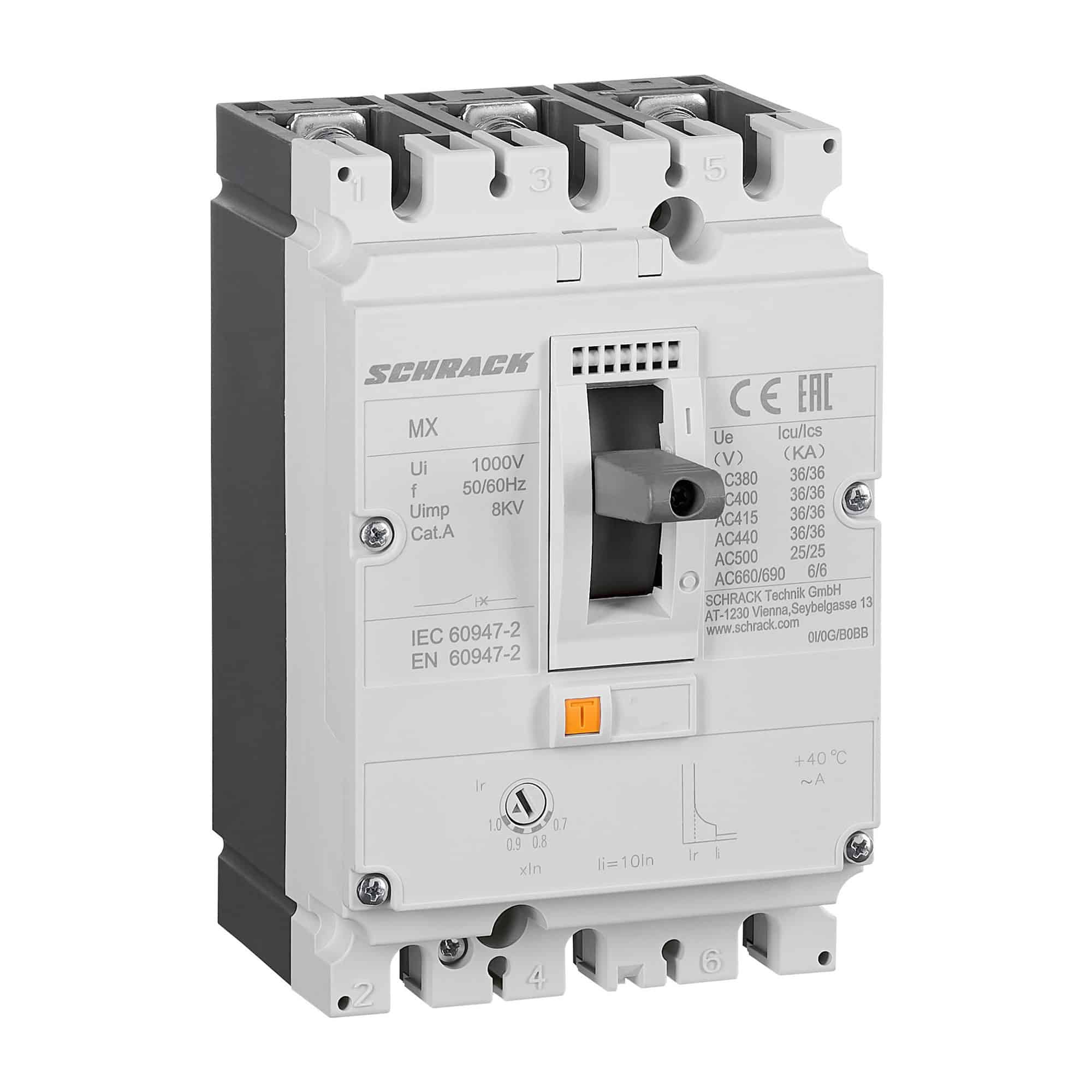 Întreruptor automat MCCB de la Schrack, mărime 1, tip fix, 3 poli, 25A, cu capacitate de întrerupere de 36kA. Produsul este dotat cu caracteristici tehnice avansate precum curbă de declanșare și compensare temperatură. Acest întreruptor automat asigură protecție fiabilă pentru circuite electrice, fiind destinat aplicațiilor industriale și comerciale. Specificațiile includ date precise despre coeficienții de compensare a temperaturii, oferind stabilitate și siguranță în funcționare.