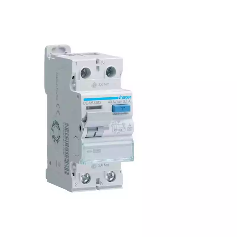 Întreruptor diferențial RCCB Hager CEA540D este un dispozitiv de protecție cu 2 poli, capabil să suporte un curent de scurtcircuit de 10kA la un curent nominal de 40A. Acest model Tip A oferă o sensibilitate de 100mA pentru protecție împotriva curenților de defectare. Fi-șalterul asigură securitate în instalațiile electrice prin detectarea curenților reziduali. Produsul se încadrează în categoria dispozitivelor de protecție diferențială pentru aplicații rezidențiale și industriale, fiind componentă esențială în sistemele de distribuție energetică și securitate electrică.