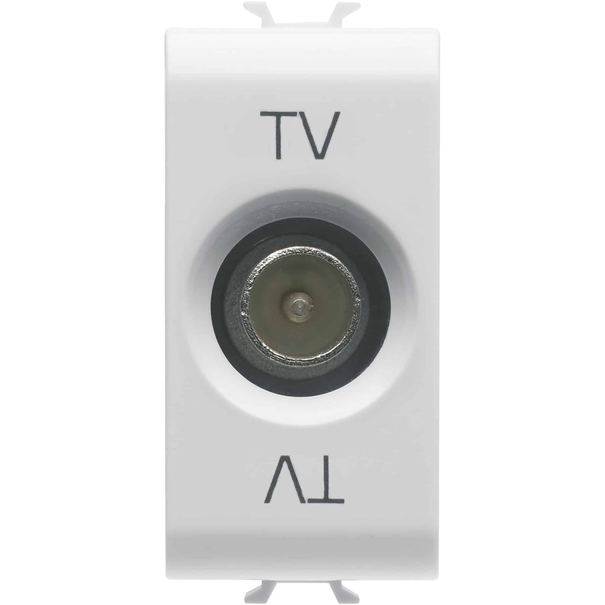 Priză modulară TV Gewiss de culoare albă, din seria Chorus, cu lungime de 1 metru. Acest model permite trecerea tensiunii/curentului pentru alimentarea la distanță și/sau semnale de control către portul utilizatorului (maxim 24V – 500 mA). Este echipat cu conector coaxial mascul IEC de 9,5mm și oferă shielding de clasă A. Priză directă cu trecere curent, proiectată pentru 1 modul, finisaj alb lucios. În combinație cu prizele de trecere GW20277, permite realizarea de prize terminale. Dispozitivele modulare Chorus oferă posibilitatea de a crea combinații infinite între plăcuțe și cadre, fiind parte a unei game complete de produse inovatoare Made in Italy pentru soluții de instalații care satisfac orice nevoie de instalare.