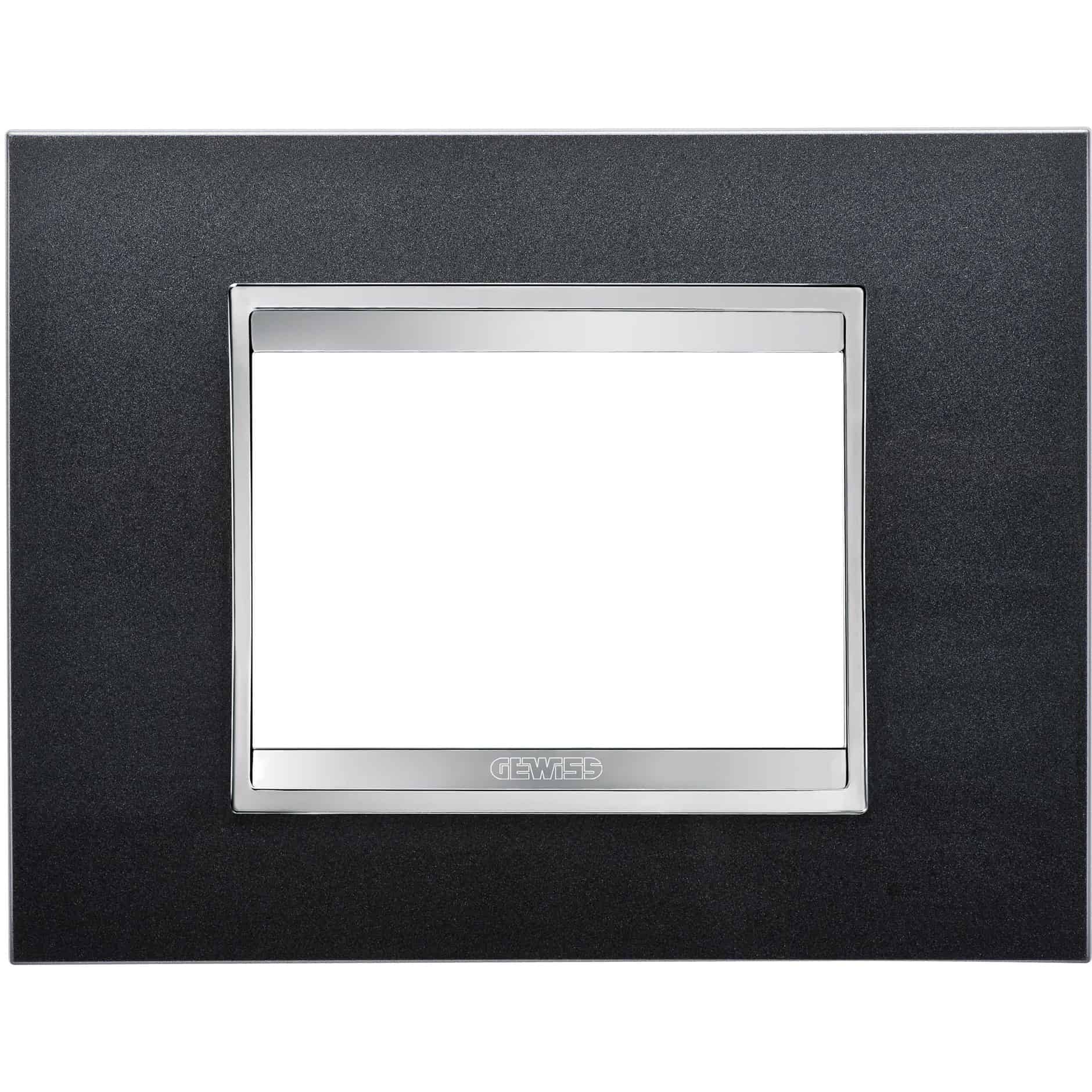 Rama decorativa Gewiss pentru aparataj modular, de forma rectangulara, cu dimensiunea de 3 metri si finisaj in culoarea ardezie, din seria Chorus Lux. Produsul face parte din gama de sisteme de conexiune, distributie, derivare si transport energie oferite de brand. Placile din aceasta serie se remarca prin linii rafinate si design contemporan, combinat cu tehnologie avansata. Solutii impiantistice innovative concepute pentru a satisface diverse cerinte de instalare, cu accent pe calitate si functionalitate.