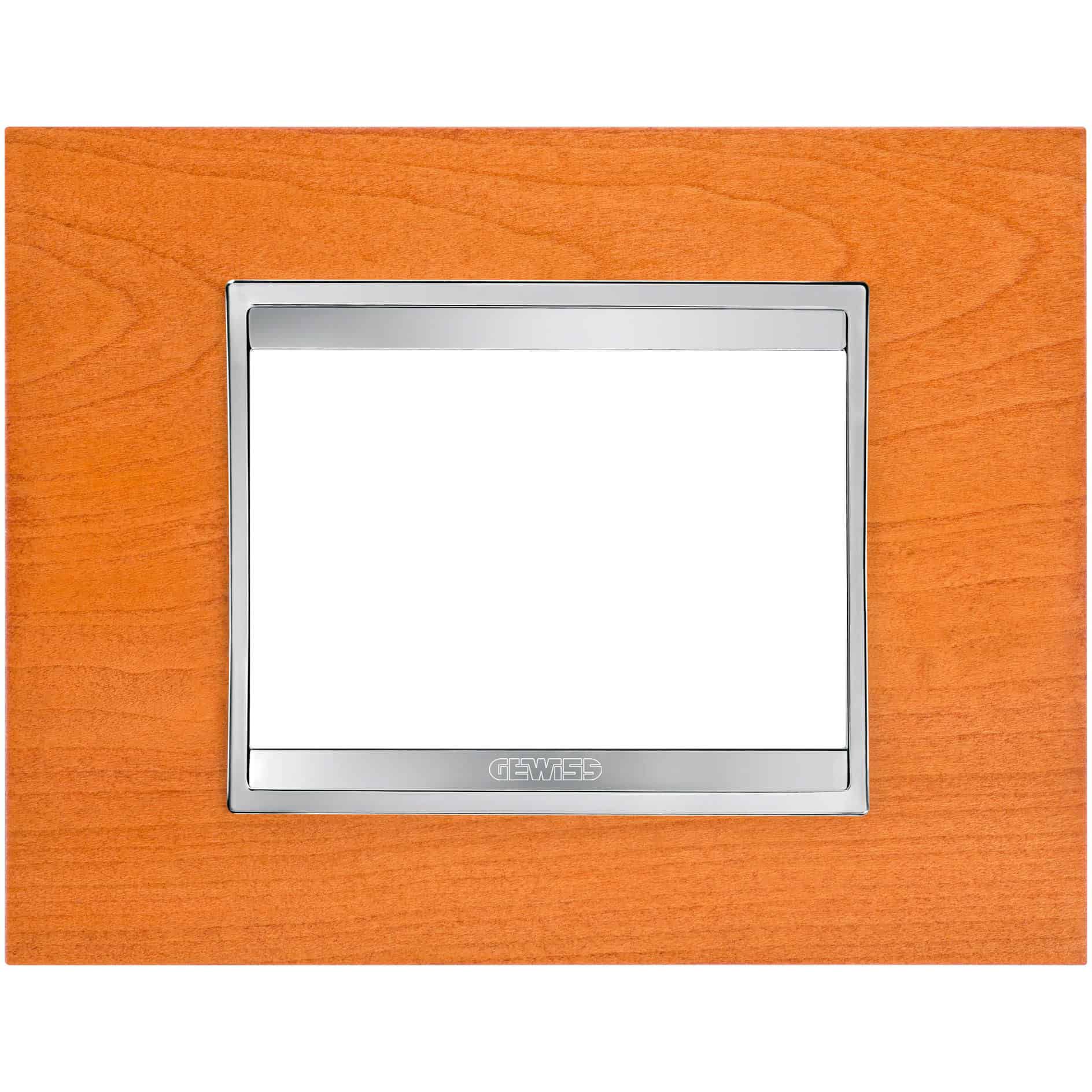 Rama decorativa rectangulara pentru aparataj modular Gewiss din seria Chorus Lux, cu dimensiunea de 3M si finisaj in culoarea cires. Aceasta placă LUX este proiectată pentru 3 locații și este fabricată din technopolimer. Face parte din gama de produse Gewiss Chorus, oferind o soluție estetică și funcțională pentru instalările electrice modulare. Produsul este disponibil în varianta cu finisaj cires (GW16203LC), alături de alte opțiuni de culori precum maple, wenge și titaniu în cadrul aceleiași serii.