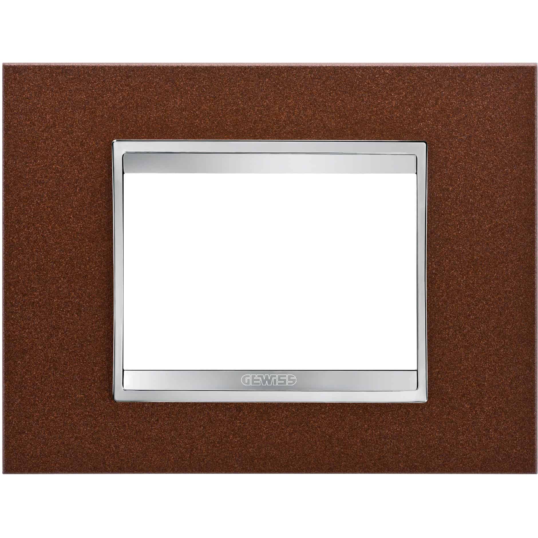 Rama decorativa din seria Chorus Lux pentru aparataj modular Gewiss, de forma rectangulara, cu dimensiunea de 3M si finisaj maro. Acest model GW16203MD este o placa Lux in metal cu finisare acidata, conceputa pentru 3 locatii (3-gang). Produsul face parte din gama Chorus Lux a brandului Gewiss si este destinat instalatiilor electrice modulare, oferind o solutie estetica si functionala pentru acoperirea aparatajului electric.