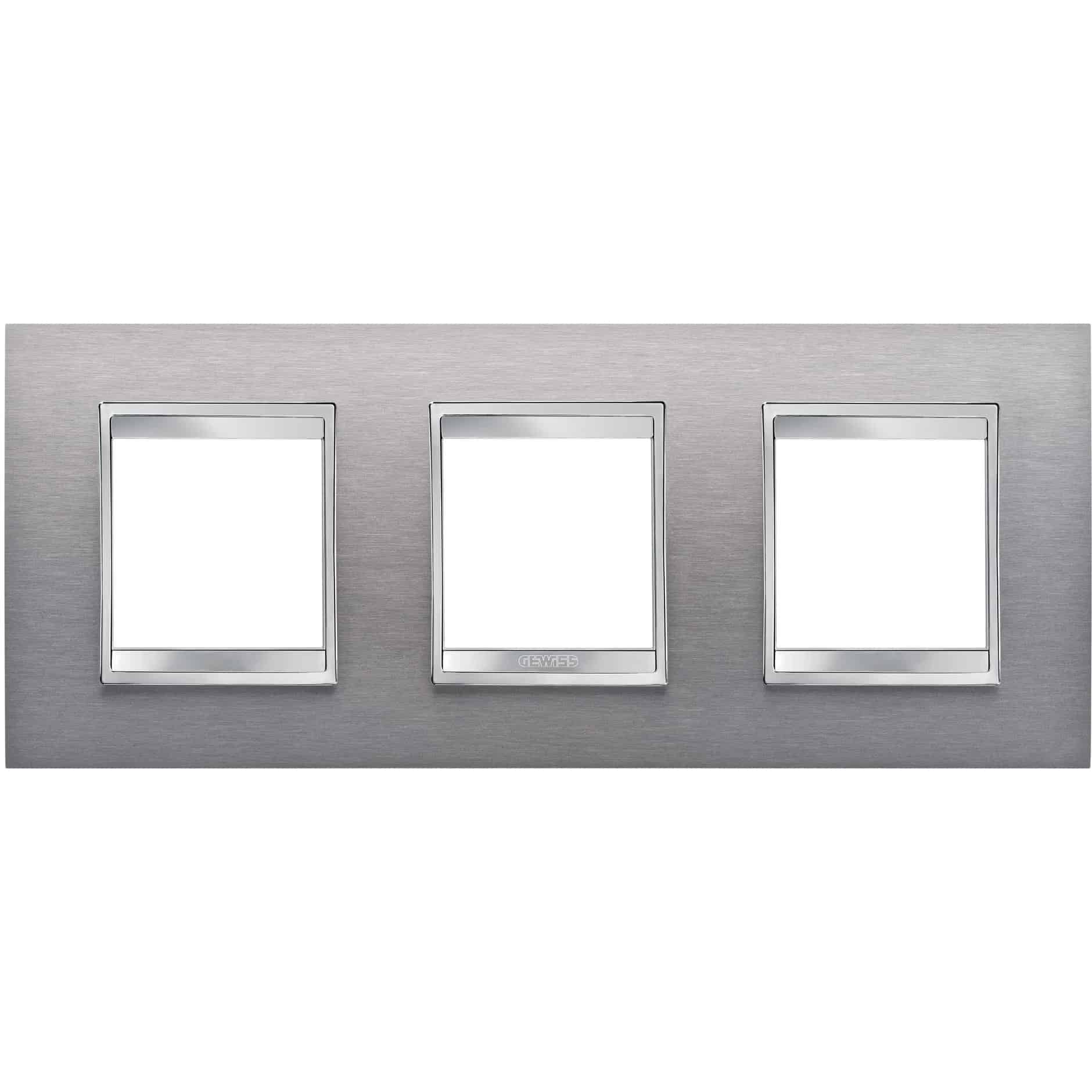 Rama decorativa pentru aparataj unitar Gewiss din seria Chorus Lux International, configurație orizontală cu 6 posturi, finisaj inox-gri. Acest model GW16226MI face parte din gama Chorus Lux, care se remarcă prin linii rafinate și un design high-tech contemporan. Placa din metal oferă un aspect modern și o personalitate puternică, fiind concepută pentru integrarea armonioasă în spații rezidențiale sau comerciale. Configurația orizontală 2+2+2 module asigură o distribuție echilibrată a elementelor de comutare și priză, iar finisajul inox-brossé (inox-gri) conferă un aspect premium și durabil.