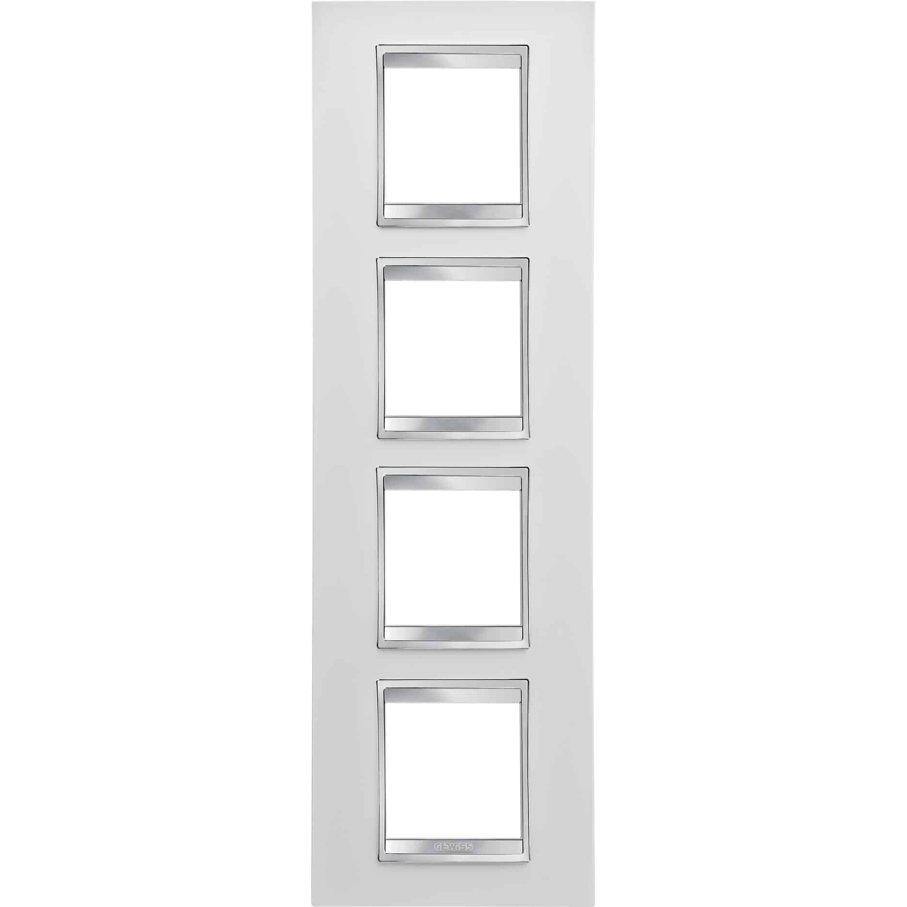 Rama decorativa Gewiss Chorus Lux International pentru 8 module, pozitionata vertical in culoarea alb-gri. Aceasta rama face parte din gama Lux International a brandului Gewiss si este proiectata pentru instalatii electrice de inalta calitate. Produsul este conceput pentru distributia, derivarea si transportul energiei electrice, oferind solutii complete pentru orice nevoie de instalatie. Rama dispune de 2+2+2+2 module si este fabricata din technopolimer, asigurand durabilitate si siguranta in utilizare. Face parte din gama Chorus de la Gewiss, care reprezinta inima ofertei companiei pentru sisteme de conectare, distributie si management energetic de ultima generatie.