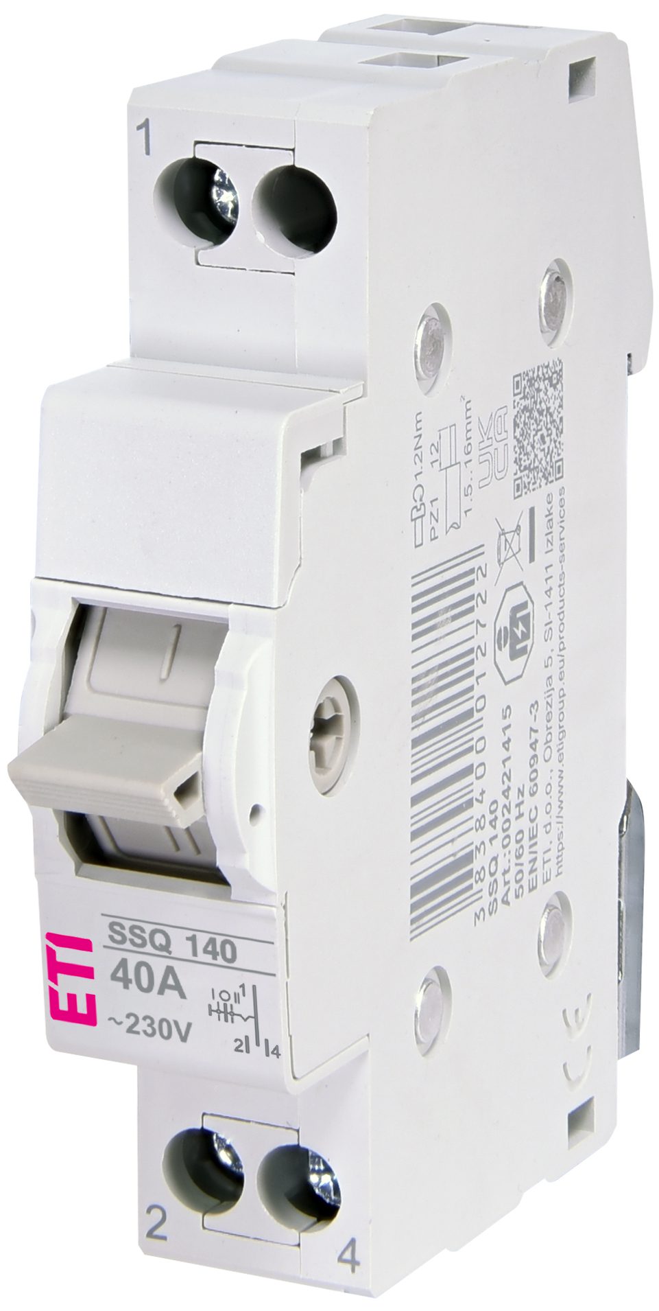 Separatorul compact ETI SSQ 140 este un comutator pentru transferul sarcinii după schema „1-0-2”, permițând comutarea consumatorului de la rețeaua electrică principală la un generator. Acest model este unipolar (1P), cu o curent nominal de 40A și o tensiune de operare de 230VAC. Produsul este destinat utilizării în instalații electrice și oferă o soluție sigură și fiabilă pentru managementul surselor de alimentare. Este un dispozitiv de protecție electrică, fabricat de un producător lider în domeniu.