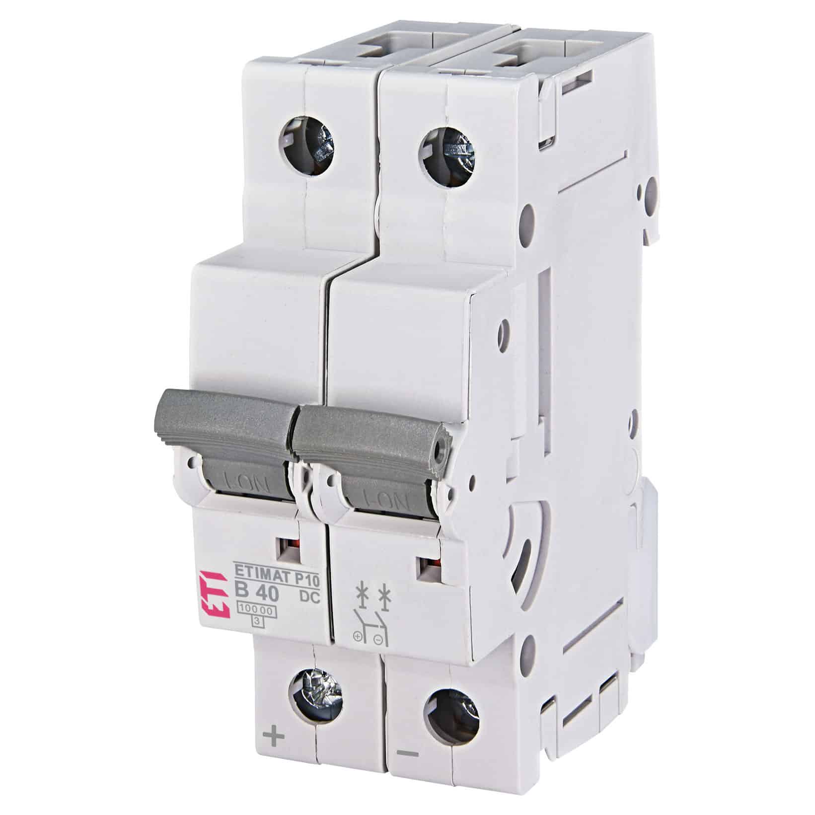 Disjunctor bipolar ETIMAT P10-DC, 40A, curba B, cu capacitate de rupere la scurtcircuit de 10kA. Acest disjunctor miniatural (MCB) este proiectat pentru protecția circuitelor electrice, fiind parte a gamei de dispozitive modulare de protecție la curent și reziduale. Este compatibil cu sistemele de protecție modulară ASTI și se adresează aplicațiilor rezidențiale și industriale, asigurând siguranță și fiabilitate prin funcția sa de deconectare automată la suprasarcini și scurtcircuite.