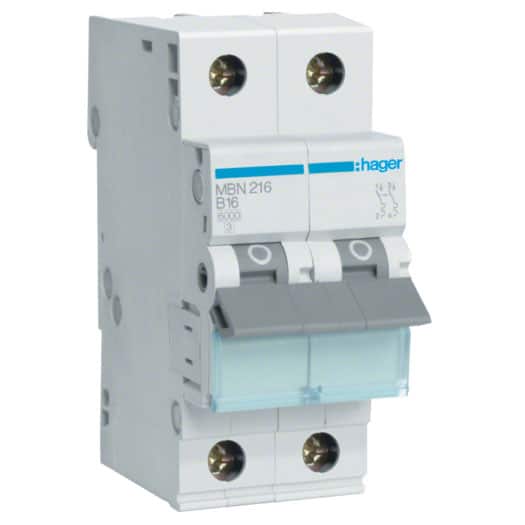 Disjunctor bipolar Hager MBN216 este un dispozitiv de protecție pentru instalații electrice, cu 2 poli și curent nominal de 16A. Acest Disjunctor automat prezintă o caracteristică de declanșare de tip B și o putere de rupere de 6kA. Produsul este nou, nefolosit și în ambalajul original. Disjunctorul bipolar Hager MBN216 asigură protecția circuitelor electrice împotriva suprasarcinilor și scurtcircuitelor, fiind un component esențial în orice tablou electric. Codul EAN al produsului este 3250614310256. Dispozitivul este disponibil pentru achiziție în magazine online specializate.