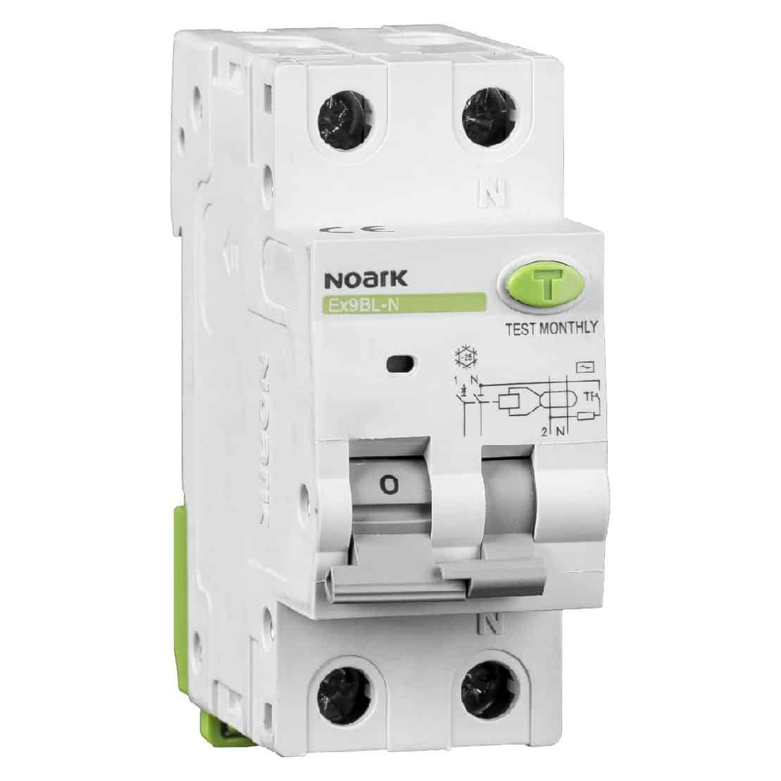 Siguranta automata (disjunctor) cu protectie diferentiala monofazica Noark, 6A, 30mA, curba C, RCBO, tip A, 6kA. Acest combinat de protectie Ex9BL-N este potrivit atat pentru aplicatii rezidentiale cat si industriale. Constructia sa este bazata pe combinatia dintre un protector de curent electromagnetic si un intrerupator cu declansare termica si electromagnetica. Principalul avantaj al acestei tehnologii este independenta de tensiune a functiei de declansare. Produsul ofera protectie diferentiala si supraincarcare intr-o singura solutie compacta 1P+N.