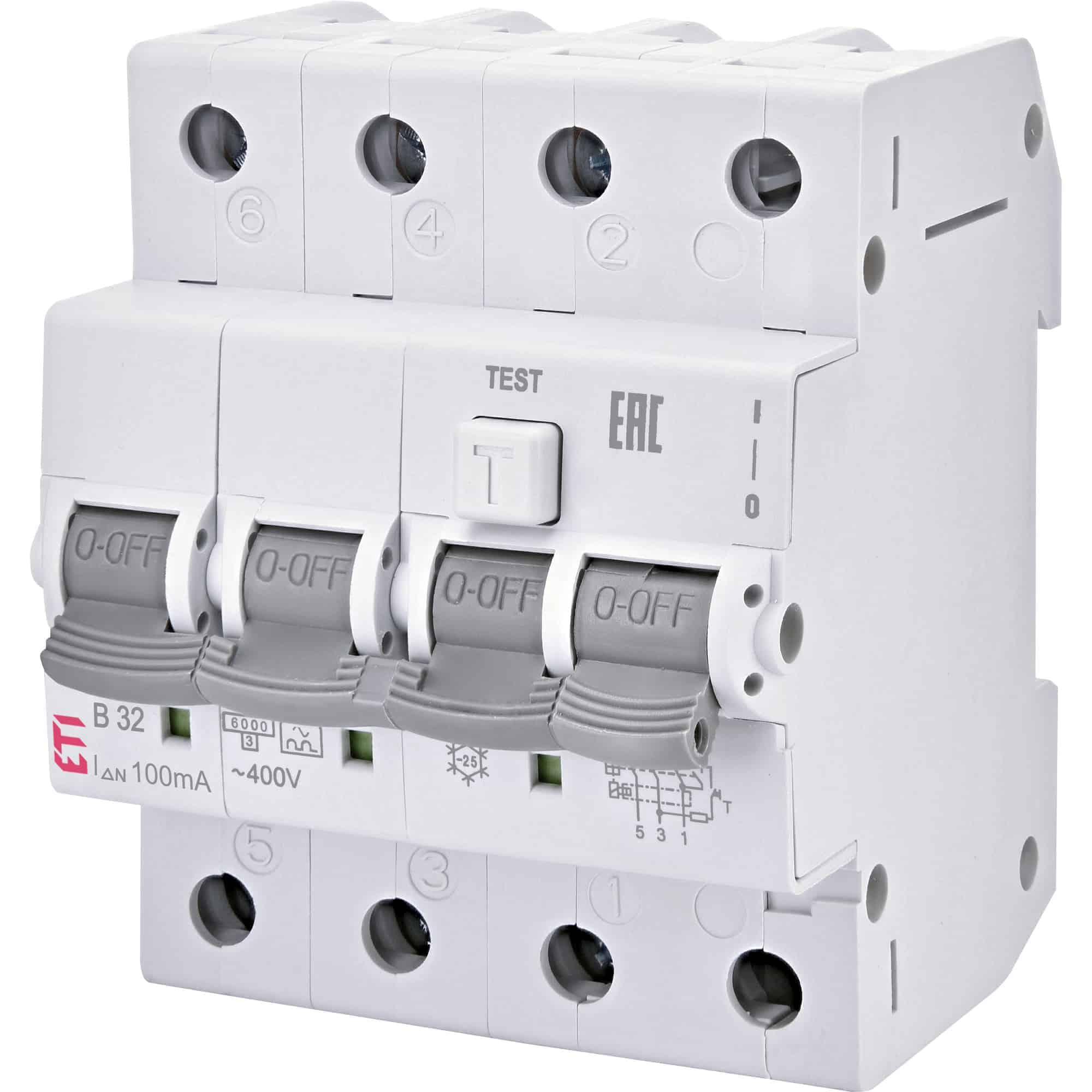 Siguranta automata (disjunctor) cu protectie diferentiala trifazica ETI, 32A, 30mA, curba C, tip RCBO AC, 6kA. Produsul ofera protectie diferentiala pentru instalatiile electrice trifazate, cu curent nominal de 32A si sensibilitate de 30mA. Disjunctorul este conform cu standardele de siguranta, avand capacitatea de rupere de 6kA si caracteristica de declansare curba C. Este un dispozitiv de protectie esential pentru instalatiile electrice industriale si comerciale, asigurand protectia impotriva scurtcircuitelor si a curentilor de defect la pamant.