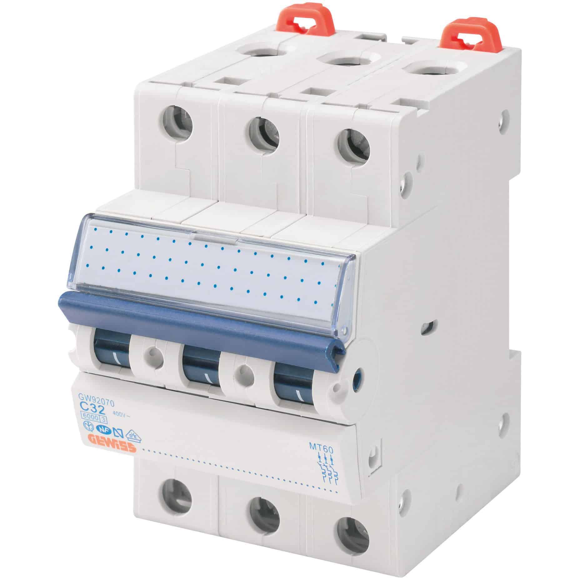 Siguranța automată (disjunctor) tripolară Gewiss 3P 50A cu curba C și capacitate de rupere 10kA, model GW92072, face parte din seria 90 MCB. Acest disjunctor magnetotermic asigură protecție eficientă împotriva suprasarcinelor și scurtcircuitelor pentru aplicații civile, terțiare și industriale. Dispozitivul cu 3 module este proiectat pentru o gamă largă de utilizări în instalații electrice, oferind siguranță și fiabilitate în funcționare. Caracteristicile tehnice includ: tip tripolar (3P), curent nominal de 50A, caracteristică de declanșare curba C și putere de rupere de 10kA, asigurând protecție completă a circuitelor electrice.