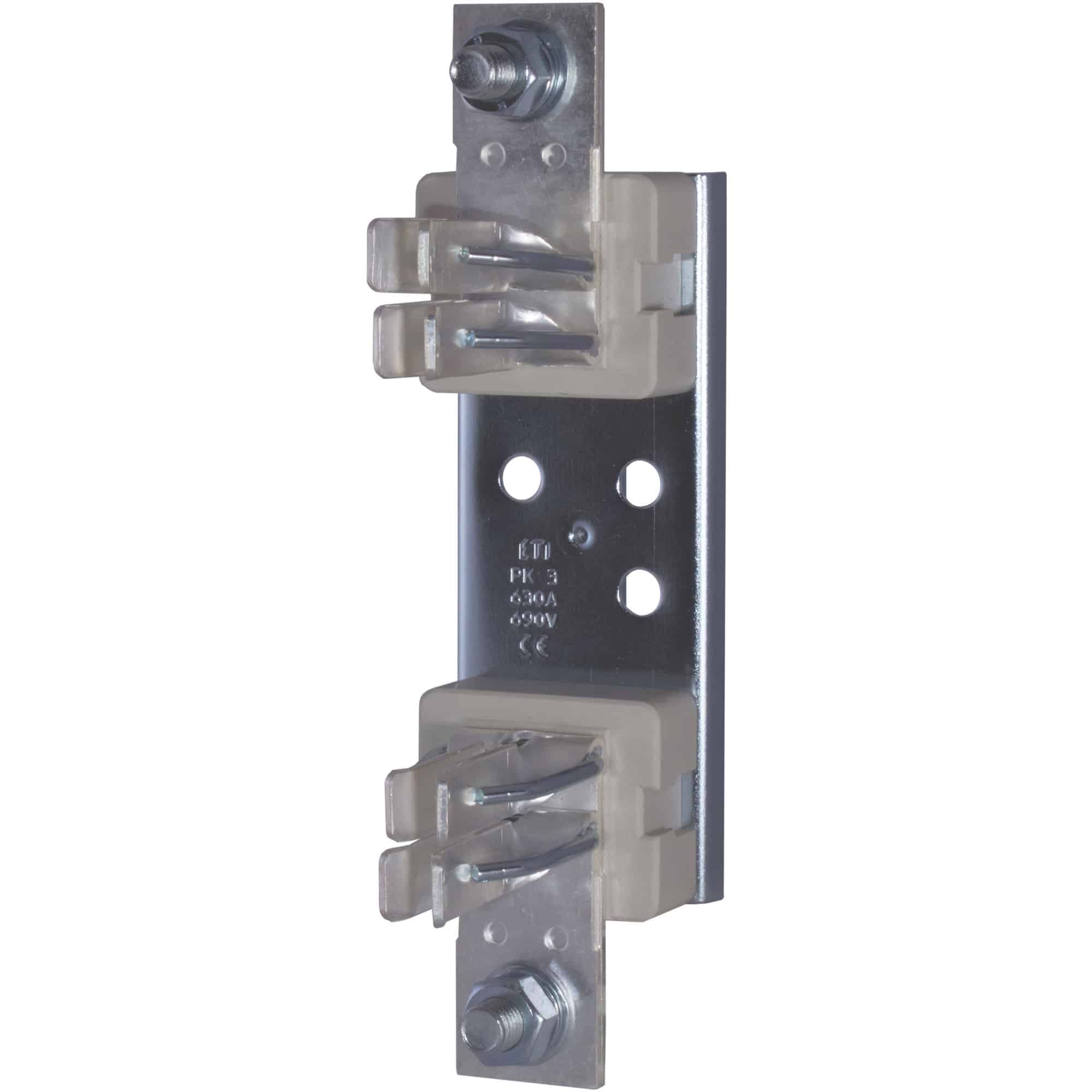 Soclu pentru sigurante fuzibile MPR ETI, Grup 3, 630A, cu configuratia PK 3 P3-P3 1pS. Acest produs este fabricat de ETI, un brand recunoscut ca lider mondial in producția de dispozitive de protecție electrică. Specificațiile tehnice includ o capacitate de 630A, oferind o soluție robustă pentru aplicații electrice ce necesită protecție prin siguranțe fuzibile.