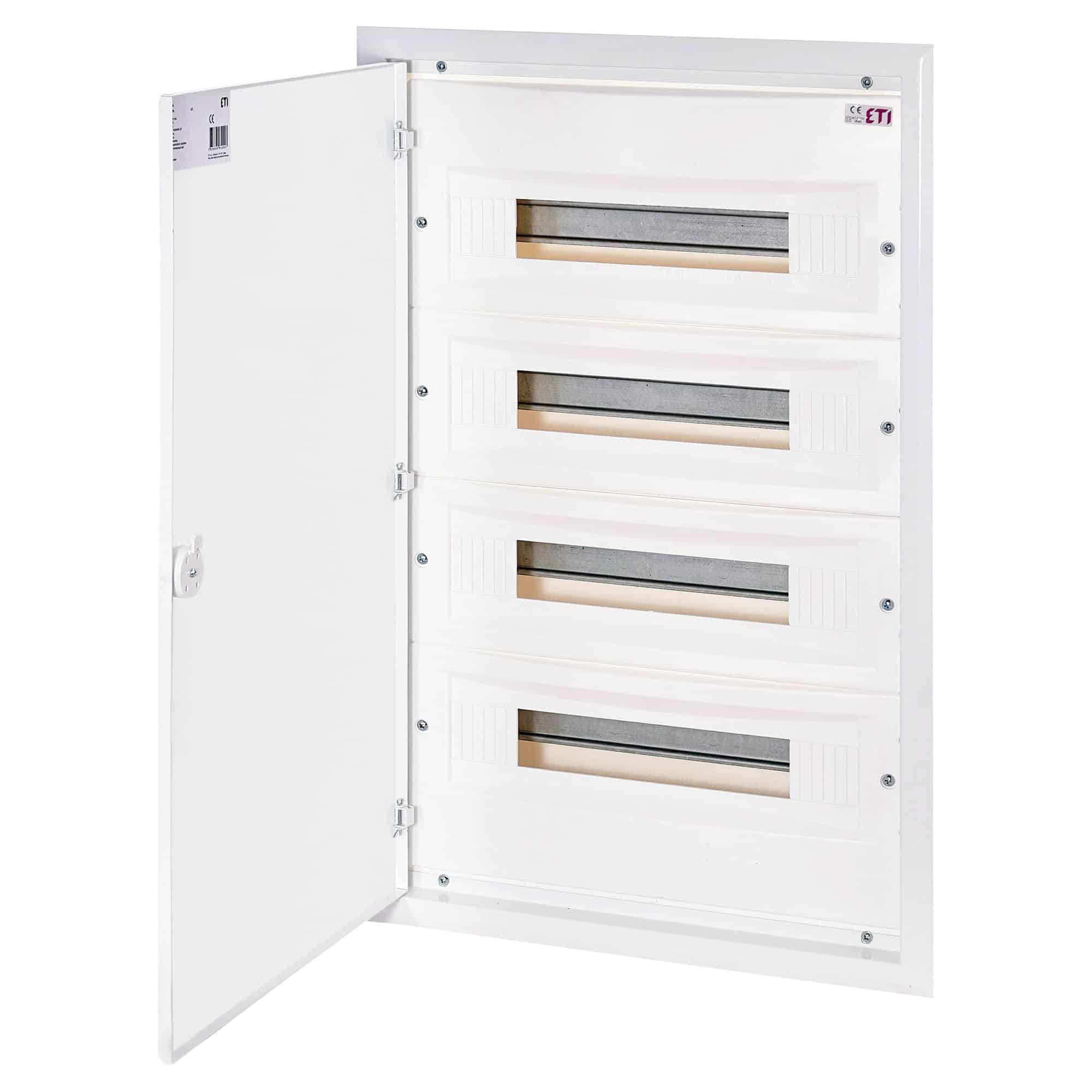 Tablou electric metalic modular de 72 module, proiectat pentru montaj incastrat, cu dimensiunea de 4X18. Produsul este echipat cu plastroane si ofera un grad de protectie IP40. Acest tablou electric este fabricat de brandul ETI si este identificat prin codul SKU 1101214. Este un dispozitiv modular conceput pentru instalatii electrice, asigurand protectie si organizare componentelor electrice. Produsul se adreseaza instalatiilor care necesita un tablou electric compact si eficient, cu specificatii tehnice clare si un nivel de protectie adecvat pentru utilizari interioare.