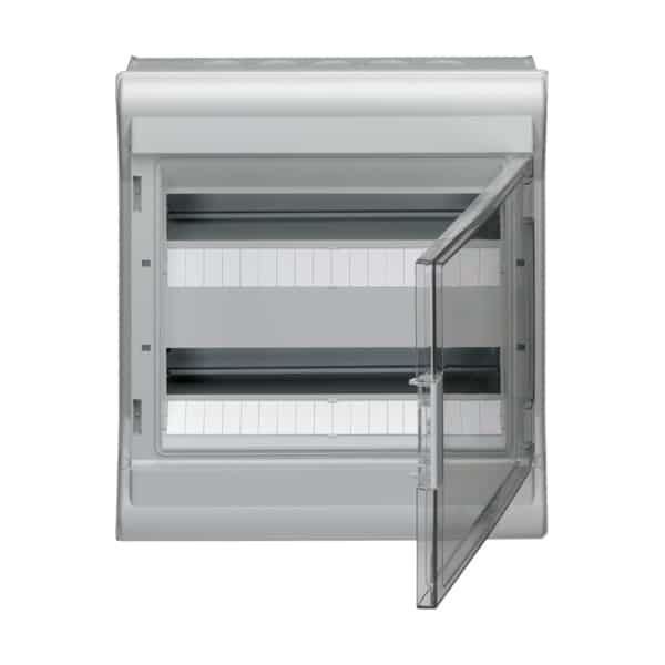 Tablou electric Hager Vector, model VE212L, confecționat din PVC, cu 24 de module, versiune aplicată și grad de protecție IP54. Acest tablou de distribuție din seria Vector este proiectat pentru montaj de suprafață și oferă flexibilitate în instalarea componentelor de intrare și ieșire conform necesităților. Caracteristici tehnice includ: șină DIN reglabilă în adâncime pentru a acomoda produse de diferite dimensiuni, capac transparent cu balamale (pentru modelele de 2-10 module) sau ușă (pentru modelele de 12-54 module), șuruburi de reglare spate pentru montaj pe suprafețe de perete neregulate/iregulare (până la 3 mm). Ideal pentru aplicații industriale și comerciale care necesită protecție împotriva prafului și a umezelii.