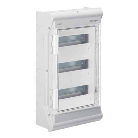 Tablou electric Hager Vector, fabricat din PVC, cu 36 de module dispuse în configurație 3×12. Proiectat pentru montaj pe suprafață, oferă protecție IP54/IP65 împotriva prafului și a jeturilor de apă. Caracteristici tehnice includ: tensiune nominală 400V, tensiune operatională în curent continuu, 12 guri de introducere a cablurilor metrice și stabilitate la radiația UV. Tipul de capac este ușă cu versiune închisă, prevăzută cu capac transparent. Distribuitor electric compact pentru aplicații rezidențiale și industriale.