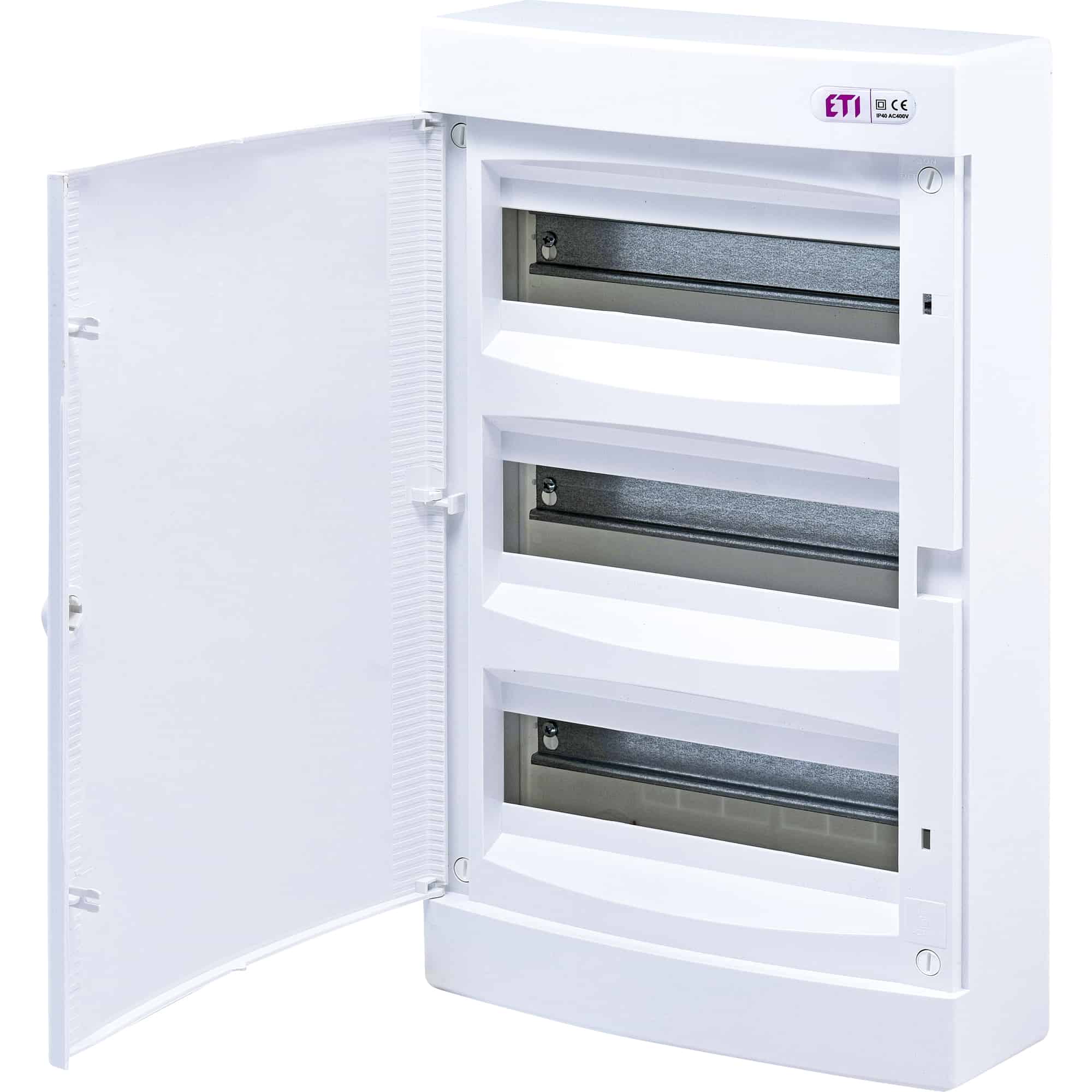 Tablou electric din PVC pentru montaj exterior, cu 36 de module, aplicat, fabricat de ETI, cu grad de protecție IP40. Configurația este 3X12 module și este echipat cu ușă mată. Acest tablou de distribuție este destinat instalațiilor electrice exterioare, oferind protecție împotriva accesului la părțile periculoase și împotriva obiectelor solide de peste 1mm. Este un produs de calitate, potrivit pentru distribuția energiei electrice în medii exterioare, asigurând siguranța și fiabilitatea instalației.