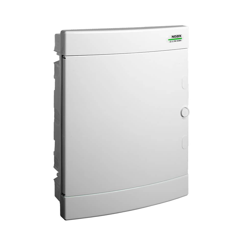 Tablou electric PVC opaca Noark PNF-HW 24W, proiectat special pentru aplicatii rezidentiale. Acest tablou de distributie este conceput pentru montaj sub tencuiala si beneficiaza de un sistem dublu de fixare care permite utilizarea si in pereti golati, testat la o temperatura de 850°C. Caracteristicile tehnice includ: clasa de protectie IP40, configuratie pe 2 randuri cu 2×12 module, usi albe. Pachetul include tabloul propriu-zis, usile si accesoriile necesare montajului. Produsul ofera o solutie fiabila pentru instalatii electrice din locuinte, asigurand protectie si organizare optima a componentelor electrice.