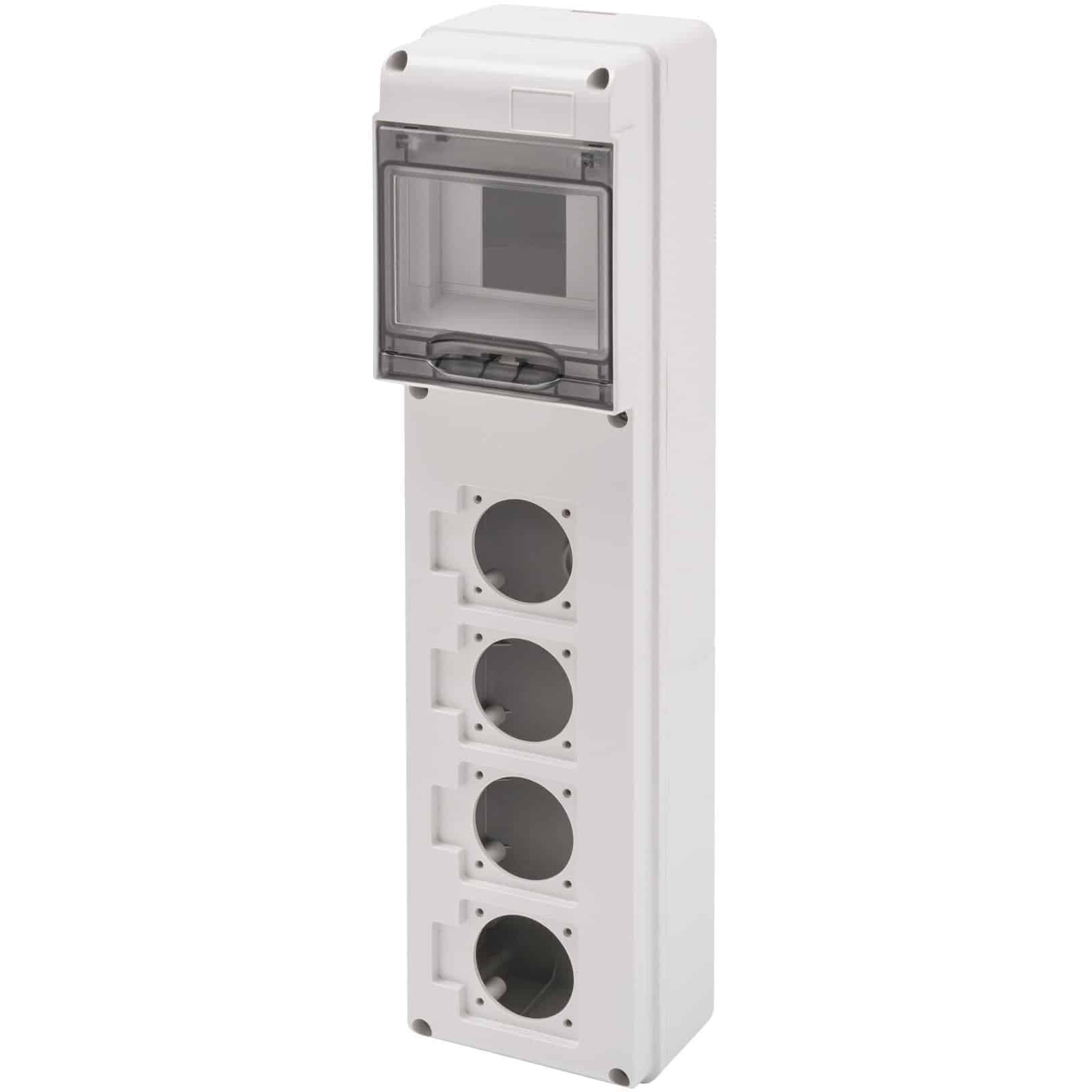 – Capacitate: 4 locuri pentru prize standard 50×50 mm
